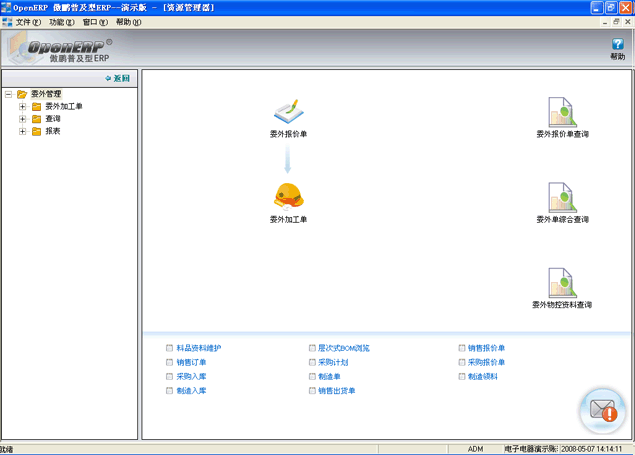 系统提供大量委外报价、委外加工单查询和报表,用户可以从不同的角度去分析,如:委外单执行状况查询、委外物控跟踪明细表、委外加工单金额年度分析、委外对账单、委外商库存查询等;