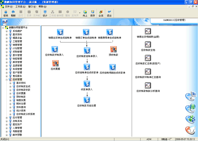 应收管理处理主要业务包括应收帐款帐龄设置,期初应收帐、自动生成应收帐款、应收帐款催款、应收帐款收款、应收票据管理。同时还包括自动产生的对帐清单。