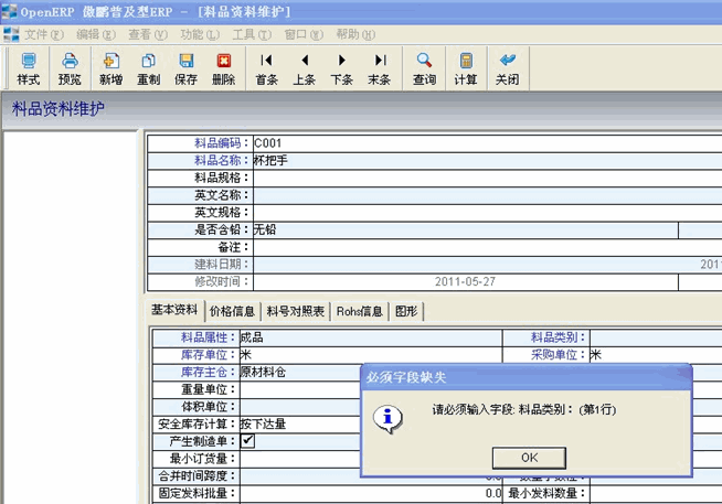 是因为料品类别没有输入数据,开窗也选择不到数据时,则需要到“料品类别维护”文件柜那里,新增料品类别,然后再来新增料品资料